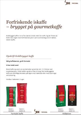 Som Foodservice grossist var vi aldrig i tvivl omkring at et samarbejde med JDE Professional var den rigtige løsning for os. JDE Professional er Danmarks førende leverandør af kaffeløsninger til det private og offentlige med over 15.000 kunder. De rister og sælger nogle af de bedste mærker som Gevalia, Café Noir, Karat, L'OR, Tassimo, Douwe Egberts og Piazza d'Oro samt Pickwick te. Nysgerrig efter mere? Besøg dem på: jdeprofessional, eller læs deres produkt sortiment og bliv inspireret nedenfor.